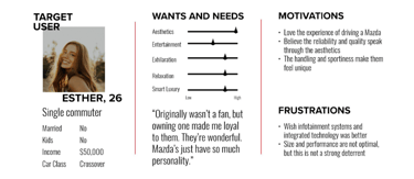To develop our brand we focused on commuters in an urban environment and utilized what we had learned about Mazda.