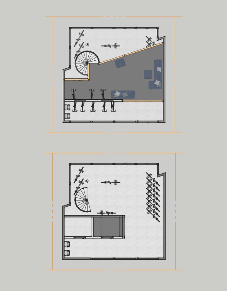 Here is our mood board from our first CAD concept to illustrate the overall feel of the space. We were going for a space that felt like a pop-up shop.