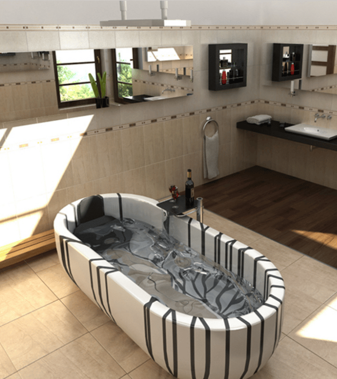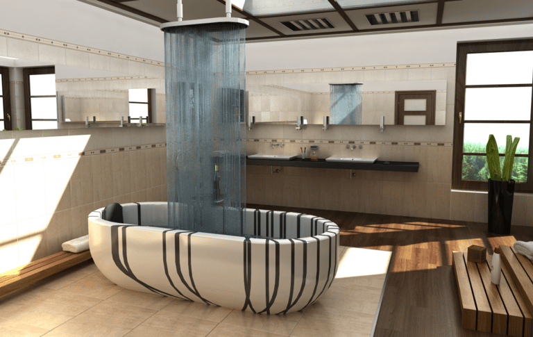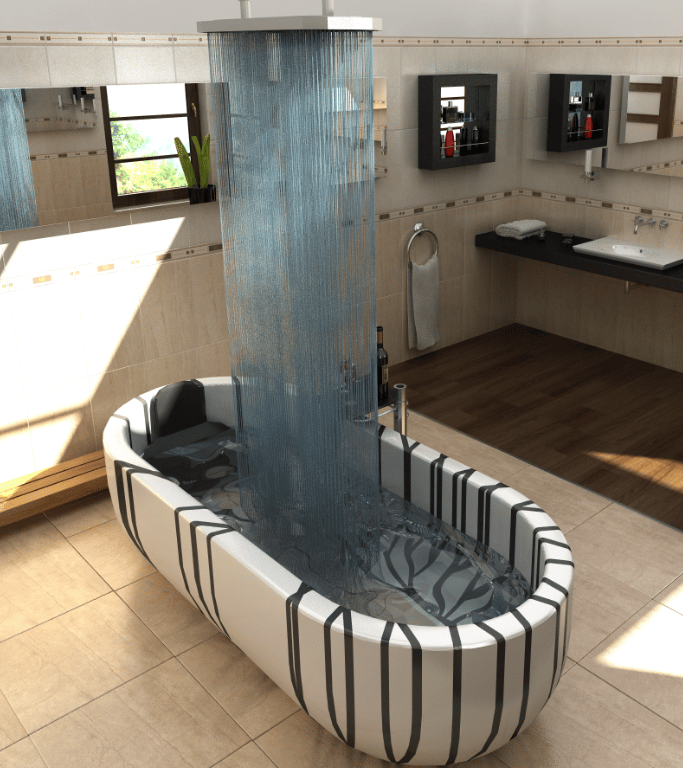 Water Collection: Used water flows from the shower tub into a hidden tank within the wall.