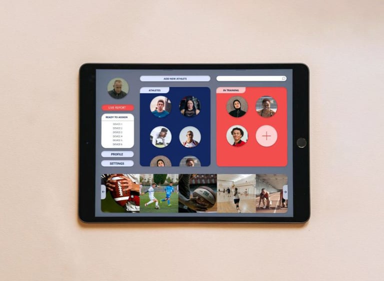 iPad App: Interface for coaches to monitor athlete progress and assign devices.