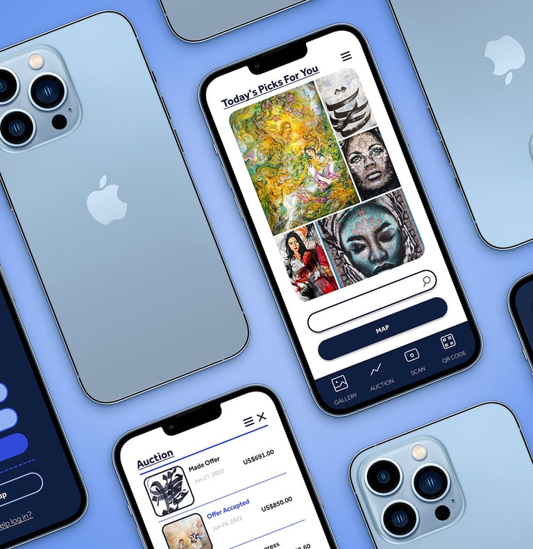 The Tehran Gallery app bridges the gap between art enthusiasts and galleries by offering an intuitive platform for exploring, purchasing, and engaging with art. Designed with a user-first approach, the app seamlessly integrates discovery, auctions, and personalized recommendations to enhance the art experience for users.